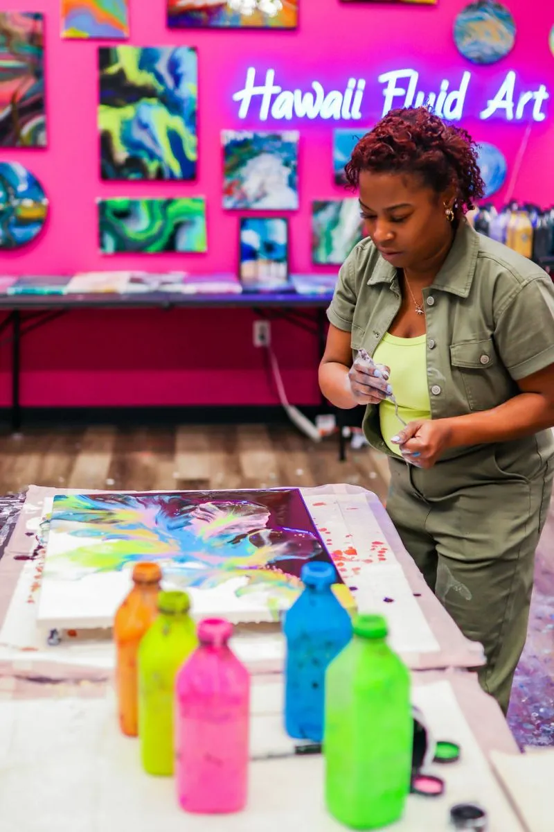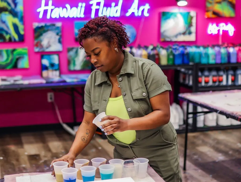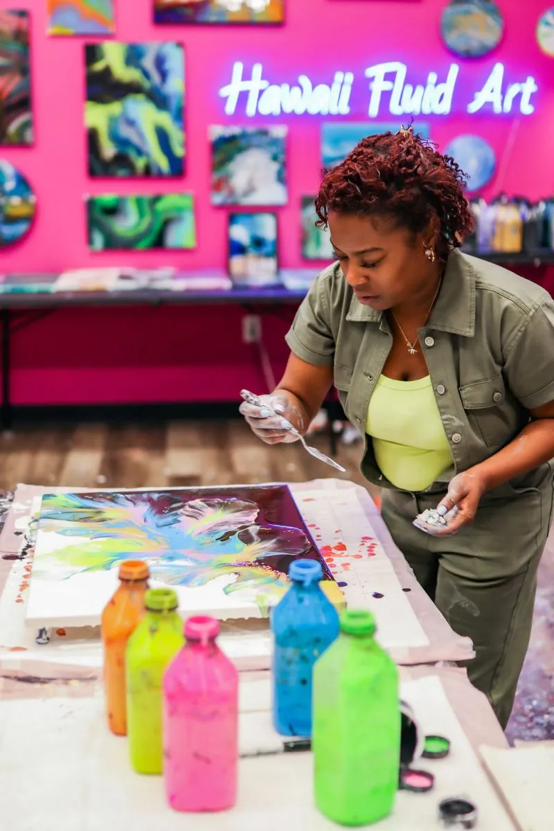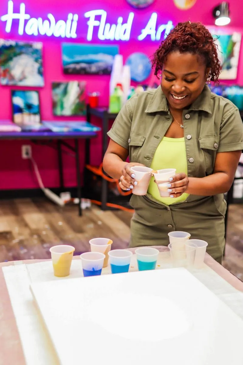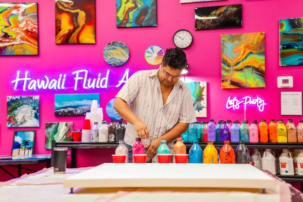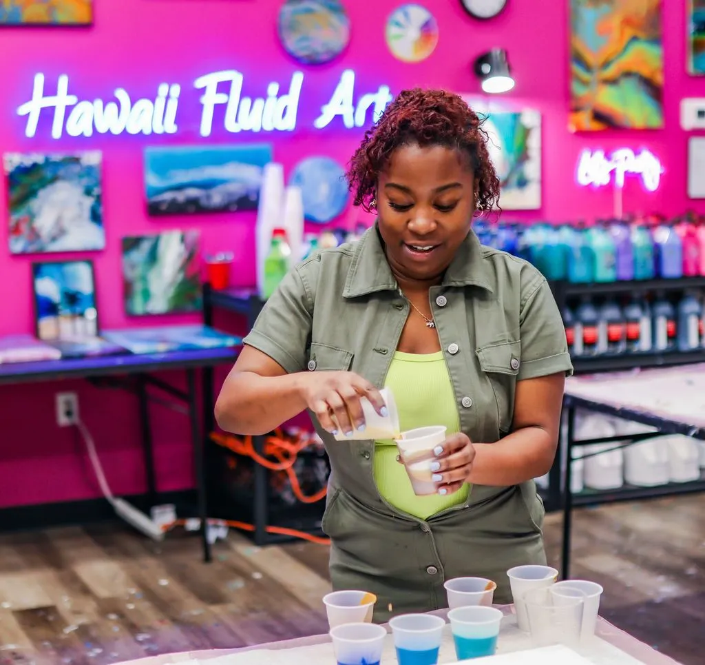 Perfect for parties, get-togethers, or simply some creative “me-time,” Hawaii Fluid Art provides a fun, welcoming space where everyone can unleash their inner artist. Explore the gallery and get inspired—then book your session and come create with us!
